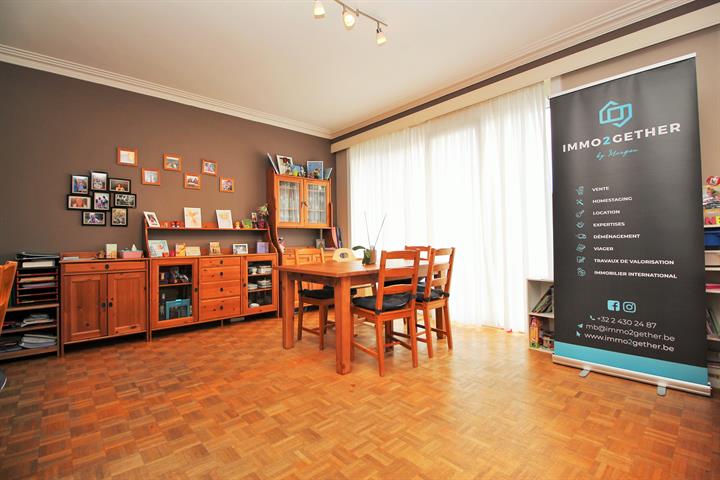 FOR SALE - IMMO2GETHER offers this beautiful 85m2 2-bedroom apartment, ideally located 2 steps from the European Institutions and all amenities, in a quiet residential area. It comprises 1 entrance hall leading to all rooms, living/dining room with balcony, 1 fitted kitchen with balcony and cupboards, a night hall opening onto the 2 bedrooms, bathroom (bath + washbasin), guest WC and cupboards. Original solid parquet flooring throughout. RGIE-COMPLIANT ELECTRICITY! Double PVC windows 2013! PEB: D. For more information, contact us on 02/430.24.87 or mb@immo2gether.be