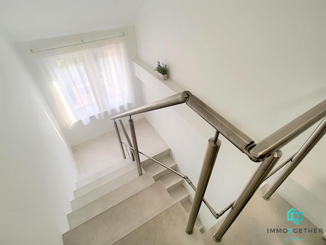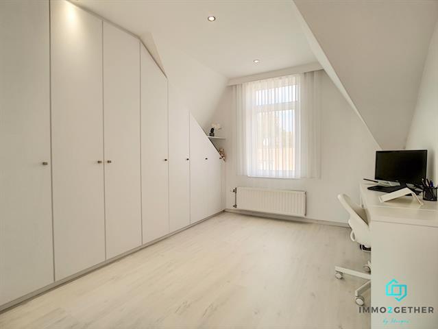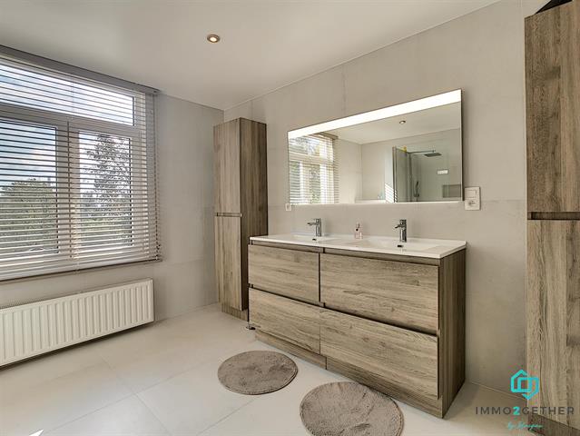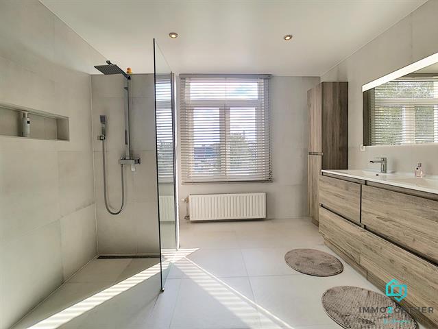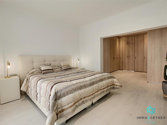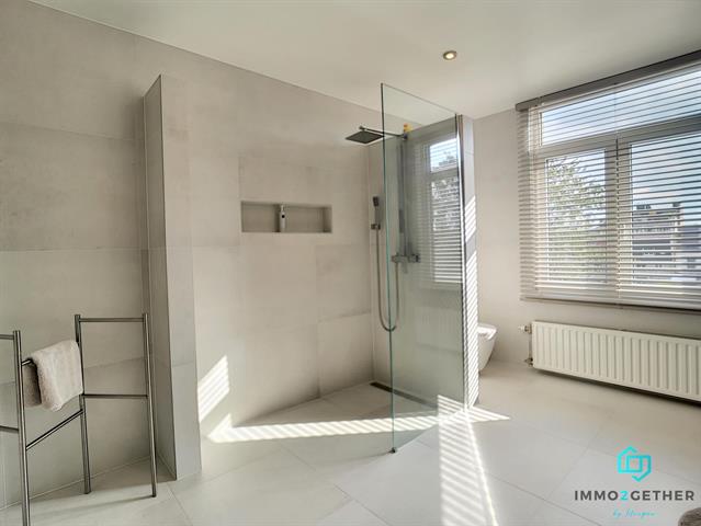 A l'étage, 1 MASTERBEDROOM de 27m2 avec bureau/buanderie et grand dressing, donnant "secrètement" accès à une magnifique salle-de-bain offrant douche à l'italienne, double vasque, sèche-serviette et WC). Au 2ième étage, une 2ième MASTERBEDROOM de 27m2 avec dressing et bureau ainsi qu'un 3ième WC avec lavabo et emplacement chaudière (+ accès aux combles via trappe). PEB: en cours... Electricité CONFORME au RGIE. Double vitrage. Chaudière gaz condensation. Vidéophone,... Plus d'infos? Contactez-nous au 02/430.24.87