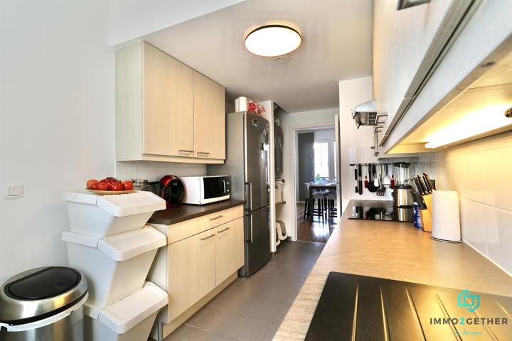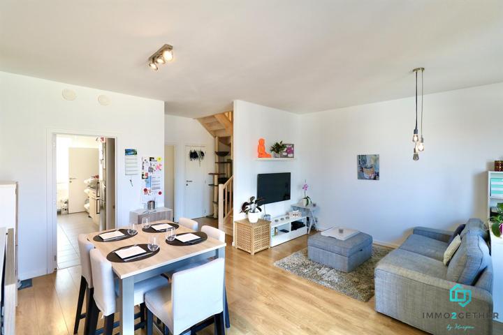 IMMO2GETHER offers you this beautiful Duplex ideally located 500m from Duden Park in a low-energy building - PEB B - with low charges 124€ /month (Syndic, insurance, building maintenance, reserve fund, heating maintenance, personal consumption of heating and private hot water). First floor: hall with checkroom, separate toilet, living room with terrace, fully-equipped kitchen (oven, induction hob, hood, dishwasher, fridge/freezer). First floor: night hall, 3 bedrooms, storage room or dressing room, bathroom (shower/bathtub/WC and laundry room). VMC - triple glazing - gas heating - secure access - reinforced door - 1 parking space included. More information? Contact us on 02/430.24.87
