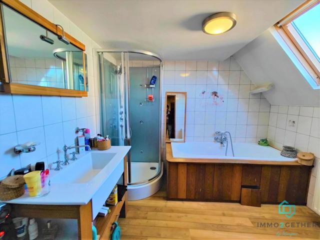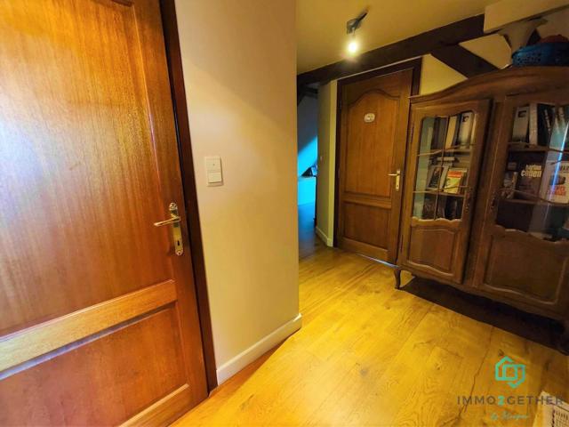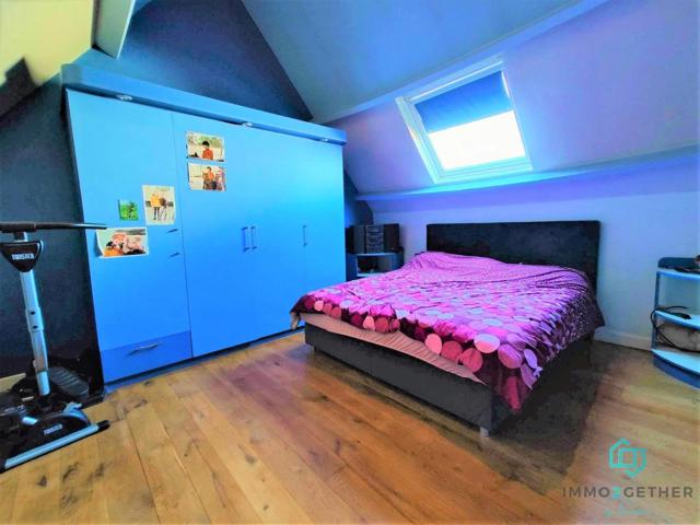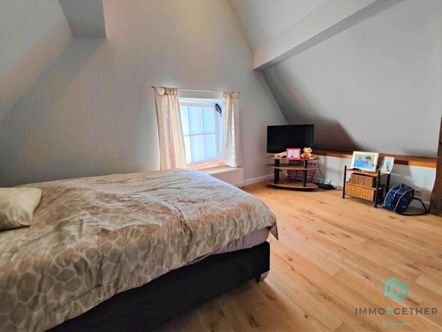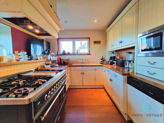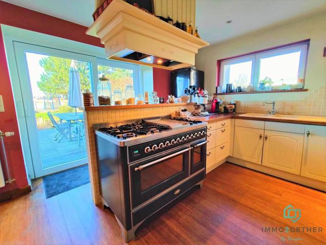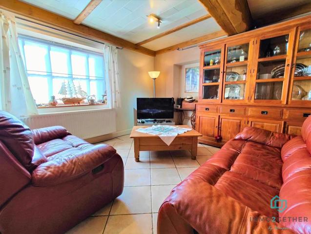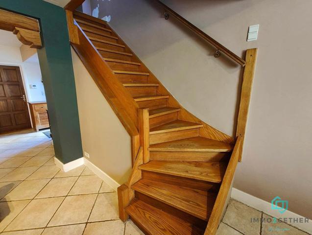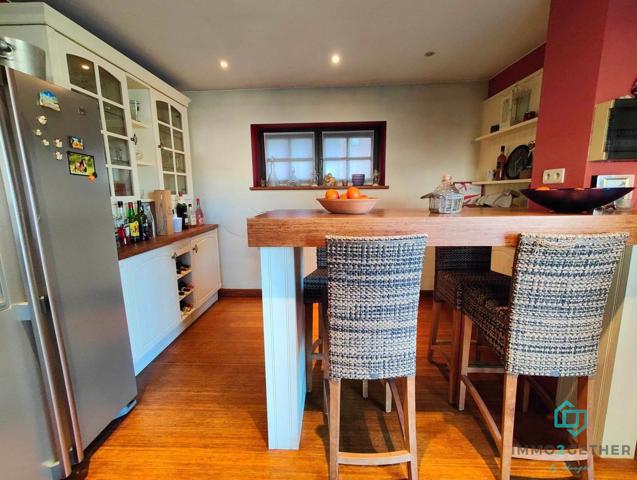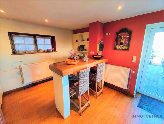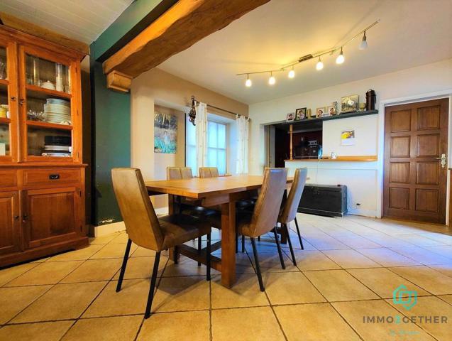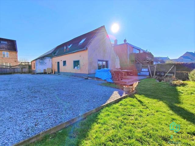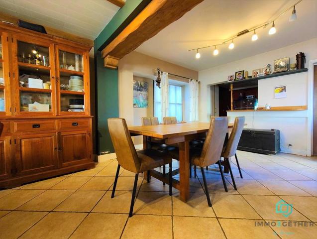 IMMO2GETHER vous propose cette belle fermette 4 façades, 3 chambres + bureau, d'une superficie habitable d'environ 165m2 habitable, idéalement située sur un beau terrain de 7 ares, avec étang et parking 6 voitures. Elle se compose comme suit : Un portail en bois s'ouvre sur un vaste parking 6 voitures, donnant sur la terrasse de 30m2 ainsi qu'un grand jardin NO. La porte d'entrée de la maison, s'ouvre sur le séjour/salle-à-manger, un beau bureau de 12m2, 1 SDD (avec WC et lavabo), ainsi qu'une grande cuisine full équipée de 25m2 avec coin déjeuner et vue sur le jardin. A l'étage, 3 chambres dont 2 avec mezzanines et 1 SDB (baignoire, douche, Wc et lavabo). PEB: E (430KWh/an). Electricité non conforme au RGIE. Adoucisseur d'eau. Chaudière GAZ "JUNKERS" (2014). Façades isolées avec crépit. Inventaire amiante (ASBEST) disponible. Plus d'infos? Contactez-nous au 02/430.24.87 ou sur mb@immo2gether.be