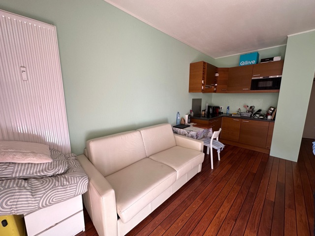IMMO2GETHER vous propose ce joli studio de 25m2, idéalement situé au 1er étage d'un petite immeuble, entre le quartier de la Bascule et de l'avenue Louise, devant le parc TENBOSH, proches de toutes facilités (transports, commerces,etc,..). Il se compose comme suit: La porte d'entrée donne sur un hall de nuit de 2,5m2, desservant la SDD (douche, lavabo et WC), ainsi que la pièce de vie principale composée dun séjour/SAM/chambre avec cuisine américaine équipée, dressing encastré, ainsi qu'une belle terrasse EST de 4,5m2. Electricité conforme au RGIE. PEB: en cours....Double vitrage. Charges mensuelles communes: entre 200€ et 250€/mois (provision chauffage, prov. eau, syndic, ascenseur, nettoyage, ass batiment et fonds de réserve). Plus d'informations? Contactez-nous au 02/430.24.87 ou sur mb@immo2gether.be