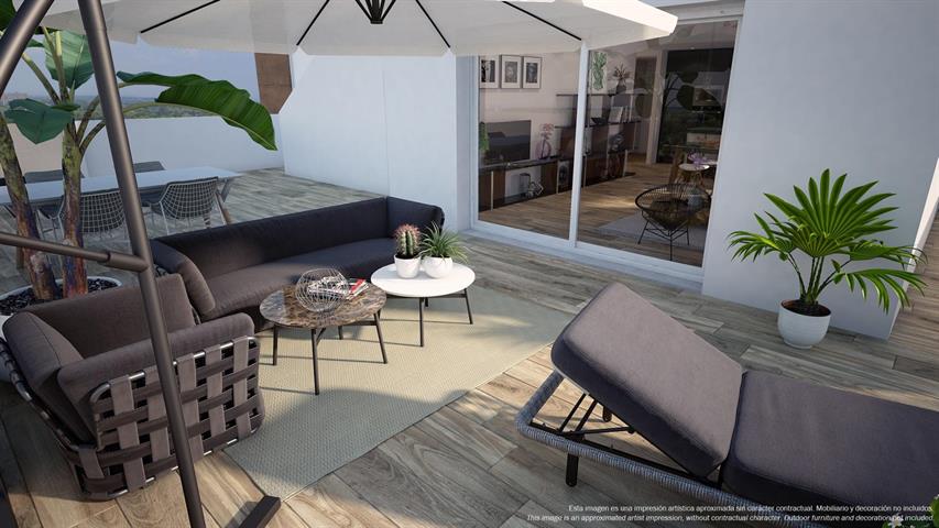 Deze prachtige appartementen in de gewilde wijk Punta Prima hebben 2 of 3 slaapkamers. De appartementen op de begane grond hebben een privétuin. De appartementen op de eerste verdieping hebben grote terrassen en die op de tweede verdieping hebben prachtige solariums. Elk appartement kan worden voorzien van een ondergrondse parkeerplaats en een kelder voor een toeslag van 5.000 euro. Weelderige tuinen, een ontspanningsruimte, eenkinderspeelplaats, hangmatten, jacuzzi's, een sauna, een fitnessruimte en twee gemeenschappelijke zwembaden staan ter beschikking van de eigenaren.