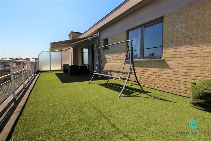 IMMO2GETHER biedt u dit prachtige PENTHOUSE (2005) met een oppervlakte van 82m2, ideaal gelegen op 2 stappen van de Basiliek van Koekelberg, dicht bij alle voorzieningen en op minder dan 1 KM van het centrum van BRUSSEL! Het is als volgt samengesteld: Een gepantserde deur geeft toegang tot de leefruimtes, een hal met ingebouwde dressing, een bureau, een open ingerichte keuken en een mooie woonkamer die toegang geeft tot een groot terras van 45m2 op het zuiden! Een nachthal scheidt de slaapkamers en doucheruimtes. 2 slaapkamers, waarvan 1 met eigen badkamer en toegang tot het achterterras van 32m2, een 2e slaapkamer en 1 badkamer (douche, wastafel en WC). EPB: D. Dubbele beglazing + Gemeenschappelijke kosten: +/- 175€/maand (Fd dragen en reserve) + INT PARKEERPLAATS (verplicht: 15.000€) + KELDER + BICYCLE STORAGE . Voor meer informatie, contacteer ons op 02/430.24.87