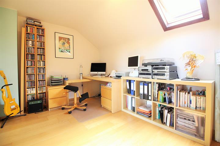 Au 2ième étage, un beau grenier aménagé en MASTER BEDROOM, de 21M2 + Bureau de 9m2 + combles de rangement.