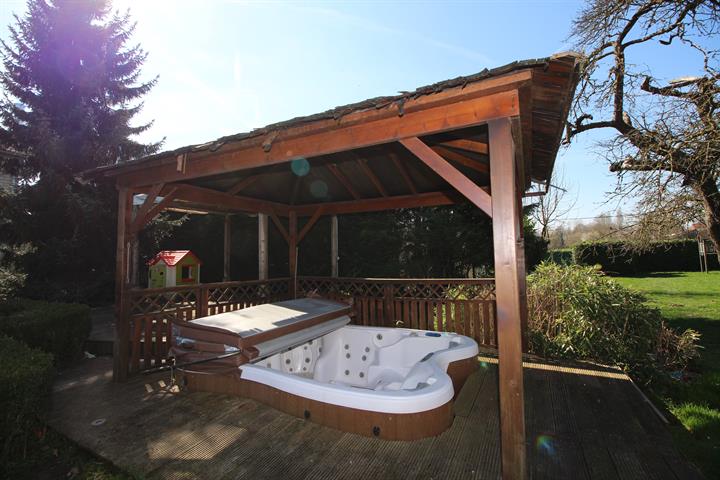 Au 1er étage : Beau séjour en U d’une surface nette de 120m2 avec salle-à-manger (95m2) + grande cuisine FULL équipée avec bloc central (25m2). Accès aux diverses terrasses d’un splendide jardin (travaillé avec jardinier paysagiste), jacuzzi d’extérieur (8 personnes), piscine chauffée (via pompe à chaleur), cuisine d’extérieur sous PERGOLA (30 personnes) + bar, chalet de rangement et terrain de pétanque.