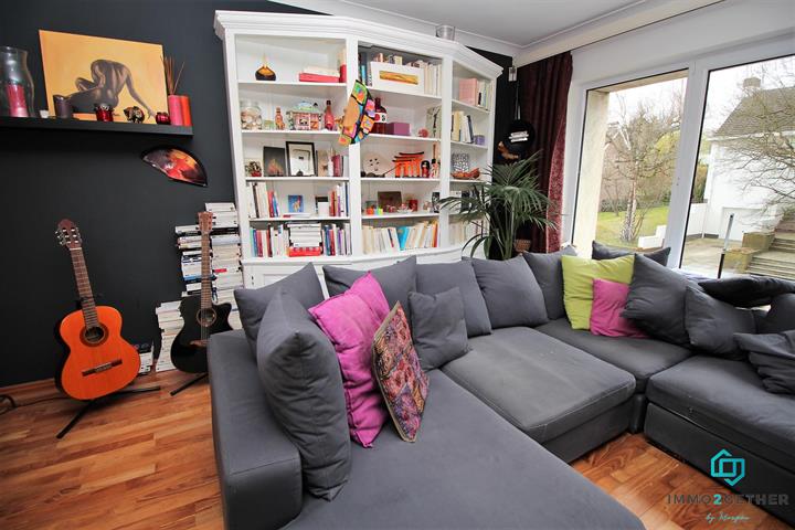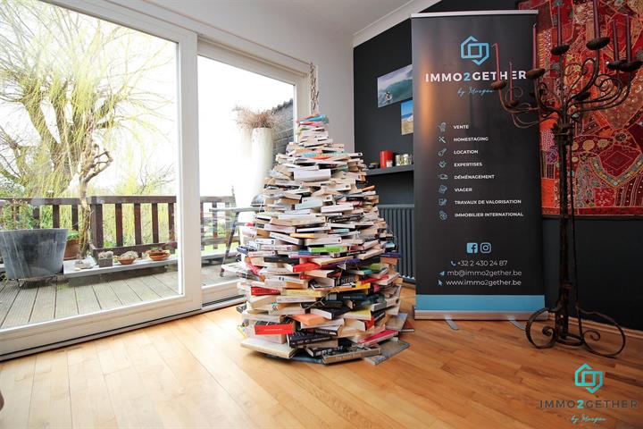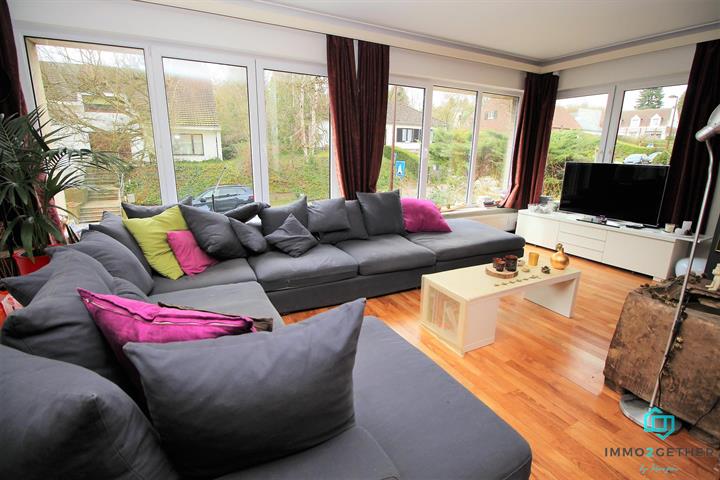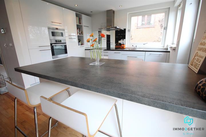 IMMO2GETHER vous propose, dans un quartier résidentiel, cette grande maison bel étage familiale, d'une superficie de 240m2) rénovée en profondeur ne nécessitant aucun travaux. RDC: hall d'entrée complètement repeint avec style, sol en marbre, WC séparé, espace chaudière, garage, petite véranda et pièce arrière pouvant servir pour profession libérale donnant accès au jardin. 1er étage : bel escalier de pierre donnant accès sur un lumineux espace de vie composé d'un séjour en L, salon avec FO à cassette et cuisine hyper équipée, ouverte, neuve, laquée blanche tendance avec coin déjeuner. Le sol du séjour est en parquet, une porte fenêtre donne accès à une grande terrasse en bankirai donnant accès également au jardin avec vue dégagée sur une plaine non constructible (zone verte) 2ème étage : 3 chambres et 1 salle de bain composée d'une douche,grande baignoire en coin, double lavabo, de jolies mosaïques bleues décorent la paroi de douche. WC séparé. Un escalier fixe en bois donne accès au grenier aménagé en chambre (28M2), chauffé, placards aménagés sous la pente du toit, velux dans le toit. Nouvelle chaudière VAILLANT et boiler eau chaude, compteur bi horaire, nouveaux châssis PVC double vitrage et nouvelle porte d'entrée, système d'alarme. PEB :243 . Nombreuses possibilités d'aménagement , beaux matériels de standing . Si vous la visitez vous tomberez sous le charme par l'espace, le calme et la luminosité, contactez-nous au 02/430.24.87