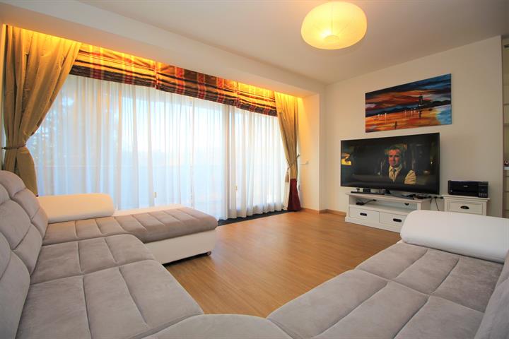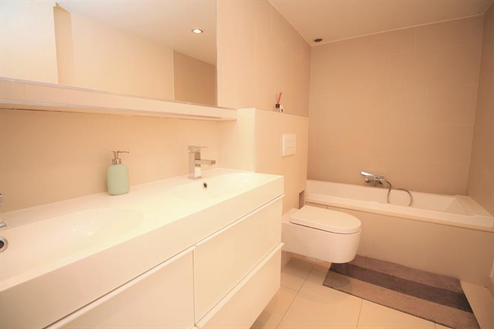 Composé comme suit : Grande séjour salle à manger donnant accès à la terrasse, une très belle cuisine américaine full équipée, un hall de nuit, une salle de douche, une salle de bain ainsi que deux grandes chambres donnant accès à la terrasse. L’appartement est situé dans une résidence de luxe et arborée dans un des quartiers les plus huppés et les plus verdoyants de Bruxelles.