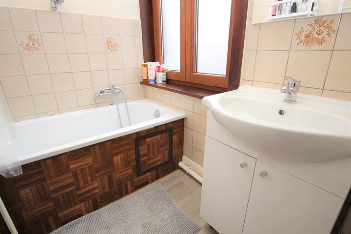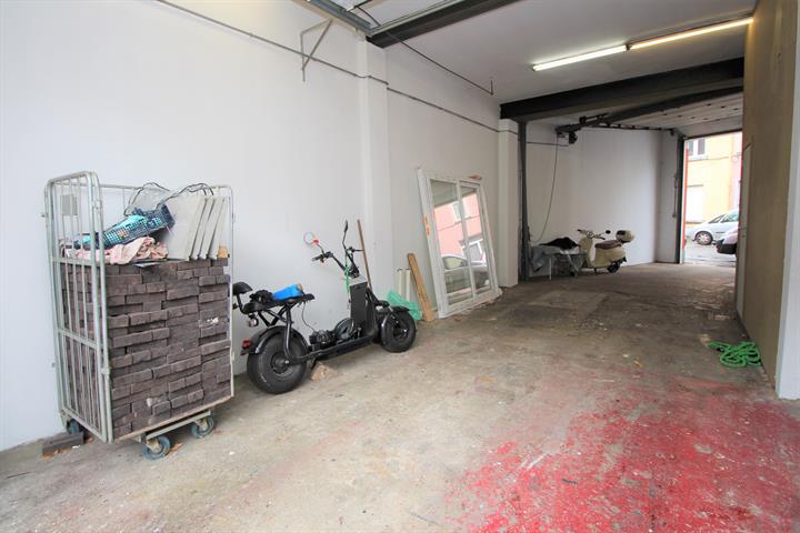 Il se compose comme suit REZ : GARAGE = 60m2 (idéal GARAGE, ENTREPOT OU CAR WASH - actuellement non occupé). Au 1er étage, un appartement 1 chambre d'environ 57m2 BRUT avec cuisine, salon, 1 sdb (baignoire et lavabo), 1 chambre (loué actuellement 750€/mois).