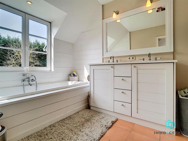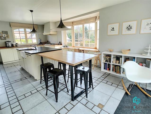 IMMO2GETHER vous propose cette splendide villa de standing (2001) avec piscine, idéalement située au cœur de la belle commune de RHODE-SAINT-GENESE, et à 2 pas du centre, proche de toutes facilités (commerces, transports, école "Onze-Lieve-Vrouw, etc,..), dans un quartier calme et verdoyant. Elle se compose comme suit: Sur un terrain de 15 ares, 2 portes d'entrées au REZ, donnant accès aux pièces de vie, une grande cuisine américaine équipée avec bloc central (34m2)+ vestiaire, une salle-à-manger (18m2) et un grand séjour lumineux de 50m2 avec FEU OUVERT. A l'étage, vous trouverez 4 chambres et 3 salles d'eau dont 1 MasterBedroom de 30m2 et sa salle de bain privative (bain, WC et douche), 1 chambre + sa SDB privative + 1 WC invité, 1 SDB commune (bain + double vasque), ainsi que 2 chambres avec mezzanine + buanderie et combles. En entre-sol,1 accès indépendant pour profession libérale OU 5ième chambre (26m2), 1 SDD avec WC et lavabo ainsi que un grand garage de 75m2 avec locaux techniques & cave à vin. PEB: C+ Electricité CONFORME au RGIE. Châssis double vitrage BOIS, chaudière au GAZ VIESMANN. Système de d'aspirateur intégré dans toute la maison,... Plus d'INFOS? Contactez-nous au 02/430.24.87 ou sur mb@immmo2gether.be