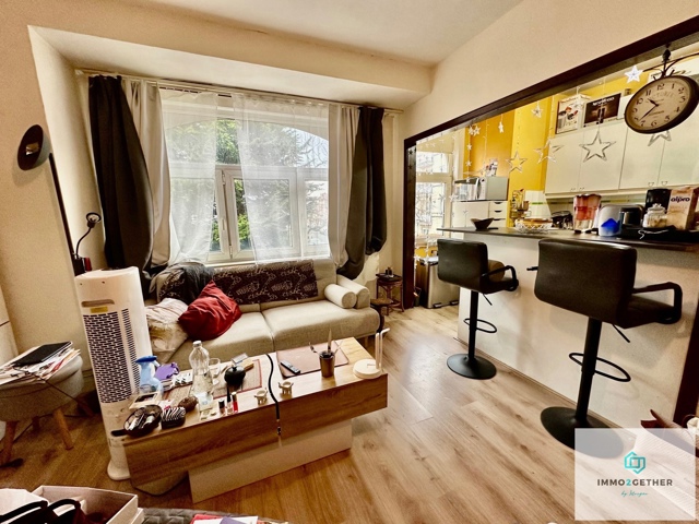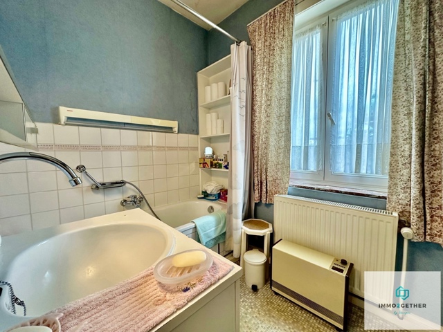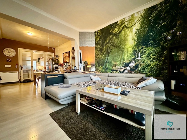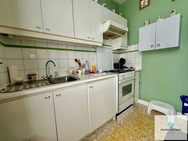Au REZ, un bel appartement 1 chambre de +/- 70 m², comprenant un spacieux séjour / salle à manger, une salle de bain (baignoire, lavabo et WC attenant), une cuisine équipée récente (2022), une belle chambre (+/- 13m2), une veranda, terrasse avec jardin de +/- 100 m² orienté EST. Châssis double vitrage à l'avant et chaudière individuelle au gaz. PEB: F. Electricité conforme au RGIE.