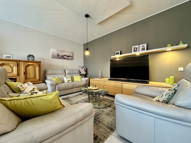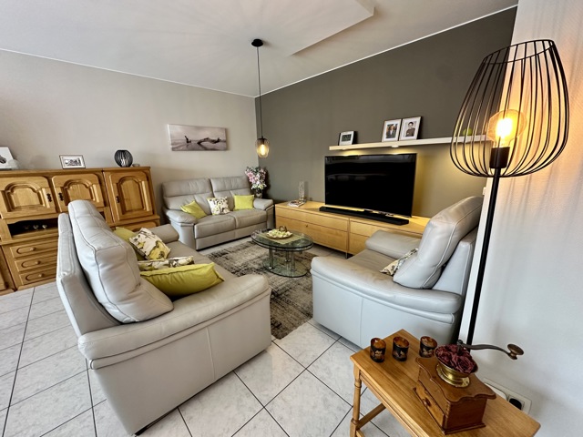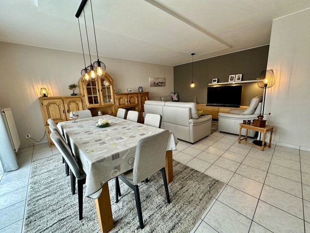 IMMO2GETHER vous propose ce magnifique duplex 110m2 (quotités de 6021/10ièmes) , situé dans une petite copropriété récente de 2001, dans un quartier calme et vert de la commune de GRAND-BIGARD. Dans un état d'entretien impeccable (1er propriétaires), il se situe comme suit: 1 porte blindée s'ouvre sur un hall de jour avec placards encastrés, une chambre de 13m2 (actuellement bureau), 1 WC invité, 1 vaste séjour de 37m2 en L, avec cuisine équipée (plaque de cuisson vitrocéramique, hotte aspirante, double évier, lave-vaisselle, réfrigérateur, congélateur, four à micro-ondes, four combiné) de 12m2, ainsi qu'un double accès à une belle terrasse. A l'étage, un hall de nuit, 2 chambres (14 et 13m2), une salle-de-bain de 6m2 (douche à l'italienne), 1 wc séparé, et une buanderie. L'appartement dispose également d'une cave et d'un parking intérieur (en option 20.000€). Double vitrage ALU. PEB: B (119kwh). Electricité non conforme au RGIE. Chaudière au gaz commune neuve de 2024. Adoucisseur d'eau. Vidéophone, Porte blindée, Charges mensuelles: 259€/mois (syndic, les jardins communs, la police d'assurance collective, l'équipe de nettoyage, la provision de chauffage). COUP DE COEUR ASSURE!