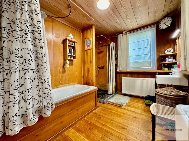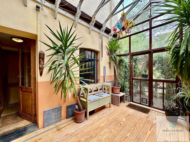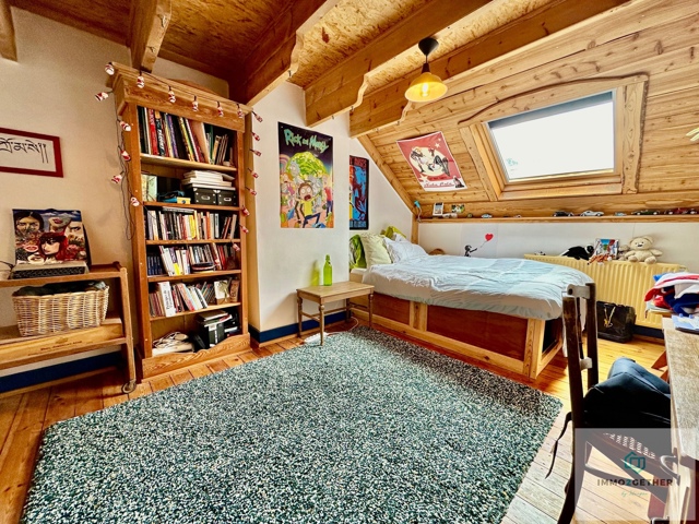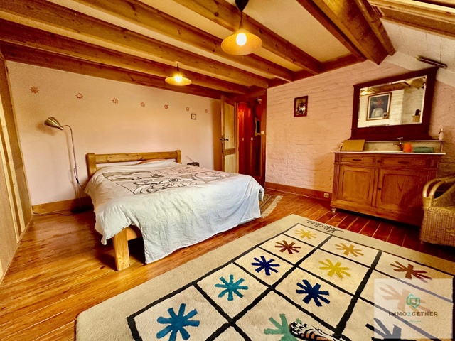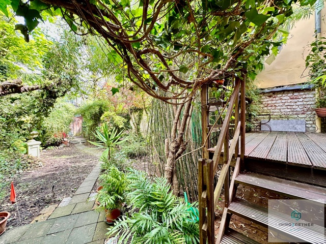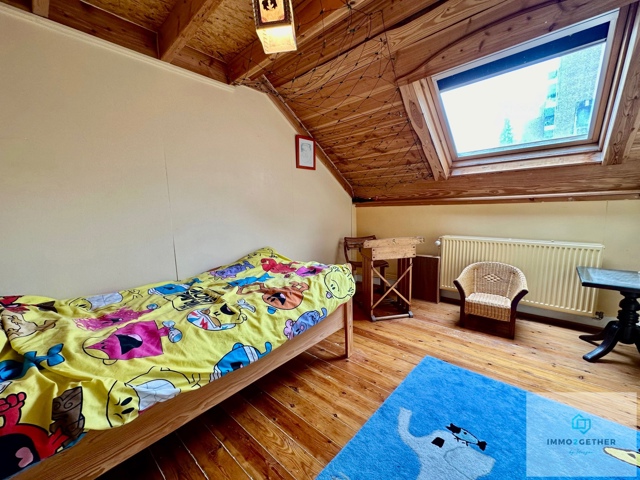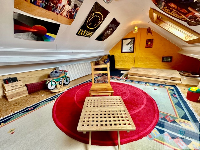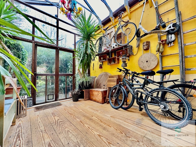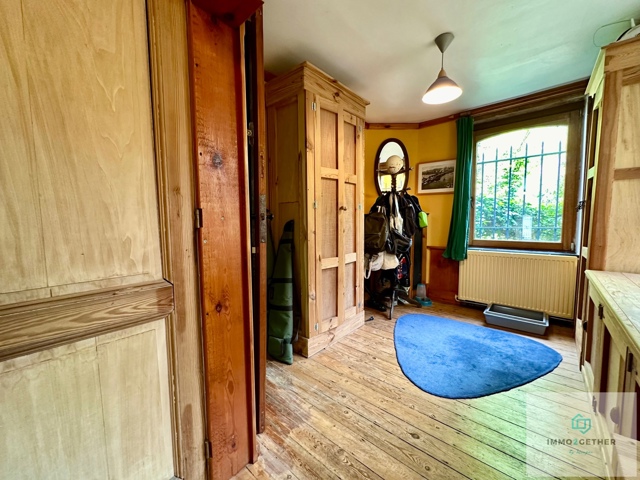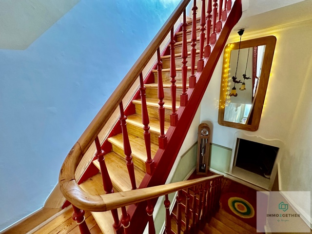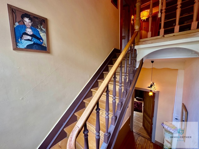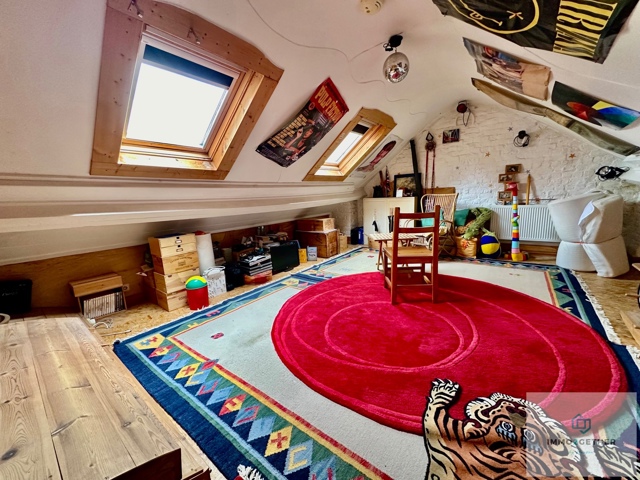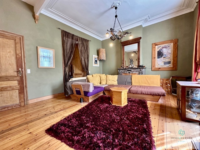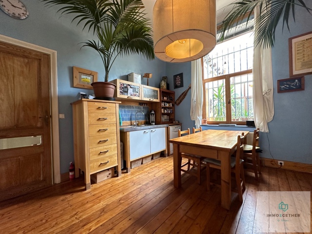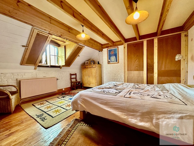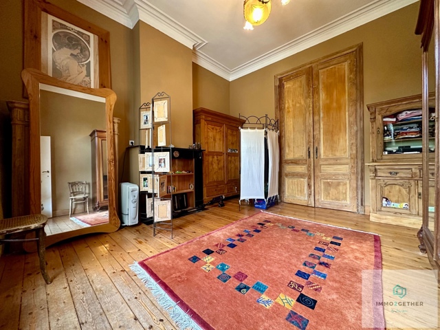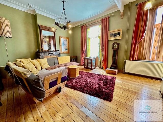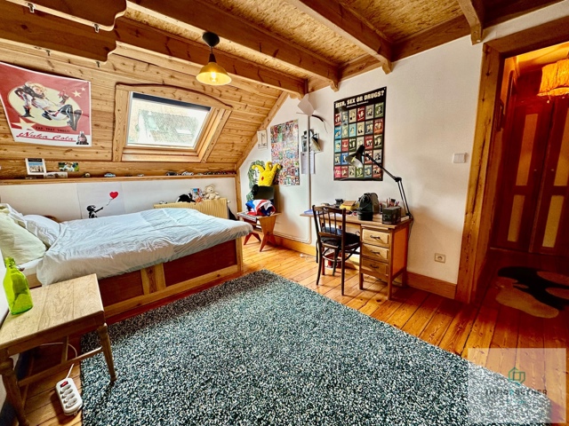 Elle se compose comme suit: Un sas donne sur un hall de jour desservant les pièces de vie, un beau séjour en enfilade de 20m2 + une cuisine de 18,5m2 (composant une double pièce en enfilade, une salle polyvalente/bureau de 11m2 côté jardin, une verrière/véranda de 12m2 donnant accès au jardin (avec étang) d'environ 100m2 NORD EST. Au sous sol, des caves aménagées en logement : 1 chambres 12m2, un séjour de 18m2, 1 petite SDD et diverses caves. Au 1er étage, une masterbedroom ou pièce polyvalente de 29m2, 1 dressing/pièce polyvalente de 20m2 avec accès privatif à une SDB (baignoire, douche, doubla lavabo, WC,..) + espace de rangement dans la cage d'escalier. Au 2ième étage, 3 chambres (19, 15 et 10m2) et 1 WC. Dans les combles aménagés, une vaste pièce polyvalente (chambre, bureau,..). Double vitrage BOIS 2003, Chaudière gaz FERROLI de 2005. Toiture de de 2004. PEB: E. Installation électrique conforme au RGIE. Plus d'infos? Contactez nous au 02/430.24.87 ou sur mb@immo2gether.be