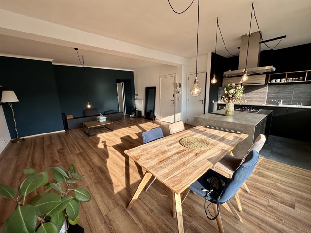 L’appartement se compose d’un beau séjour lumineux ouvert et convivial avec une très belle cuisine ouverte équipée, le séjour donne accès d'un côté à une agréable terrasse avec vue sur le parc et, de l'autre côté aux 2 chambres et à la salle de douche.